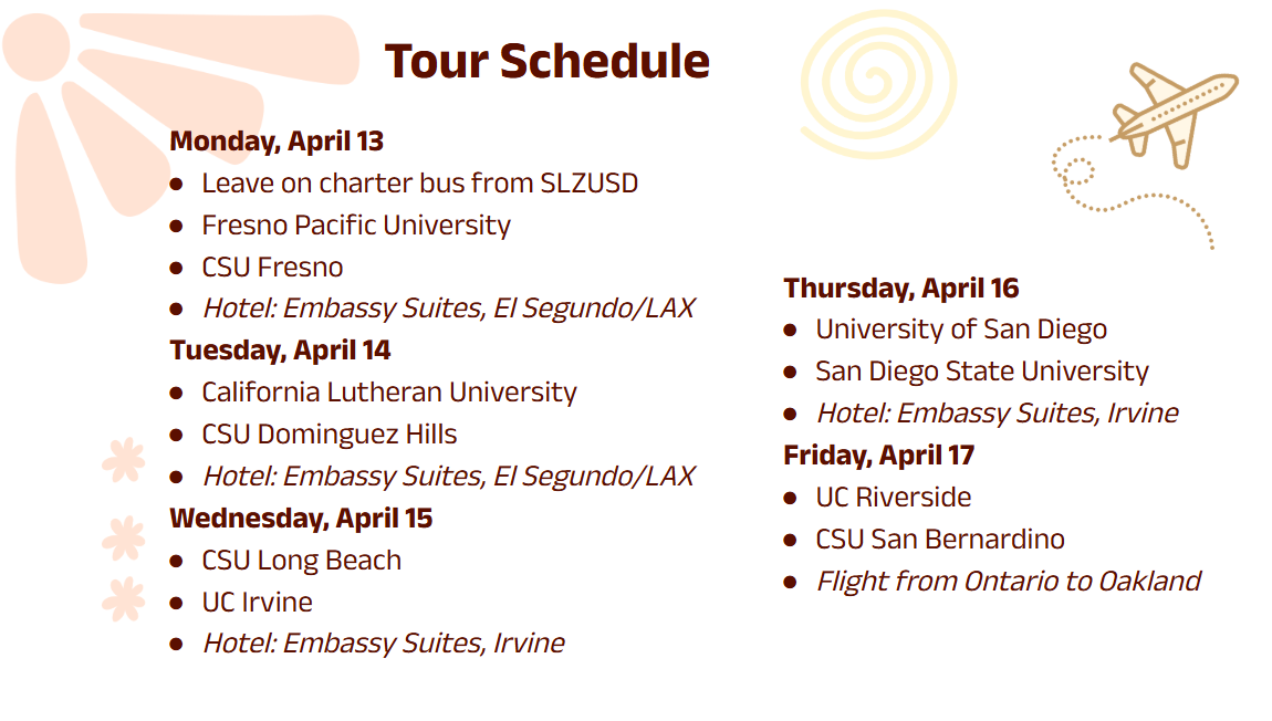 This page has information about district-led college tours open to all high school students.  These tours are sponsored by the district at NO COST to the student/family.